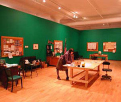That's one conclusion you can draw from "Pilot," a project that has been unfolding at the Museum of Contemporary Art Cleveland since mid-February. Over five weeks, the museum's main exhibition space gradually has been transformed into a fully functional television studio and production office. Not only that, but the artist behind the project has developed an actual show, which will be taped tonight before a live, sold-out audience. Straddling conventional notions of performance, theater and installation, New York-based artist Christine Hill conceived "Pilot" as "the complete presentation of one episode of a potential late-night TV talk show." Since she arrived in Cleveland in mid-February, Hill, a 1991 graduate of the Maryland Institute College of Art, has assembled a staff, built a set and developed every detail of the show, including her own stage persona. Step into the gallery and you'll first see a stage set, one not unlike that of "Late Night With Conan O'Brien." Beyond that is the production office, filled with everything you might expect to find there: desks, phones, computers, bookshelves, file cabinets and workers. What's interesting is that it's not a faux office; it's an actual workspace where real work is done. Schedules are pinned to the walls noting writers meetings and rehearsals. When the phone rings, Hill answers, "This is Pilot." In every sense, the activities in the gallery are real work, being done by real people, with a real goal in mind. Of course, because we know that artists are behind it all, it's difficult not to be suspicious. Is this some kind of clever, ironic statement about American media? The more you experience "Pilot," the more the answer is a resounding no. Just as all artists adopt a subject and explore those aspects of it they find compelling, Hill has spent the past decade considering labor within the context of industrious activities that stem from personal passions. Among her earliest projects was " ," a fully functional thrift store, which was included in the international exhibition "documenta X" in 1997. Next came "Tourguide?," a functioning New York tourism office. In each case, Hill fulfilled desires one can imagine coming from personal interests: travel and vintage clothing. But most provocative about Hill is where she goes from there. Underlying all her work is an extreme compulsion for organization and an almost-microscopic consideration of the details that go into the act of fulfilling her goals. Glancing at a bookshelf in the "Pilot" office, you can find a book by media theorist Marshall McLuhan, as well as art historian Lucy Lippard's "The Lure of the Local." Clearly, Hill is not just putting on a show. She's diving headfirst into the subjects that surround her initial idea, which began with a variety of interests. "Pilot's primary motivation," she wrote in the exhibition brochure, "is to channel a series of obsessions (with Improv Theater, with "Late Night With Conan O'Brien," with cottage industry, with personality development) into a cohesive installation taking a recognized form from daily life and adapting it to fit a personal agenda." From a distance, Hill is doing what many of us do when we sculpt careers out of the things we enjoy or believe in. As with most careers, the bulk of it is just plain work. But, cast in the light of such a thoughtful and scrutinizing context, labor, if you joggle your mind a bit, can become art.